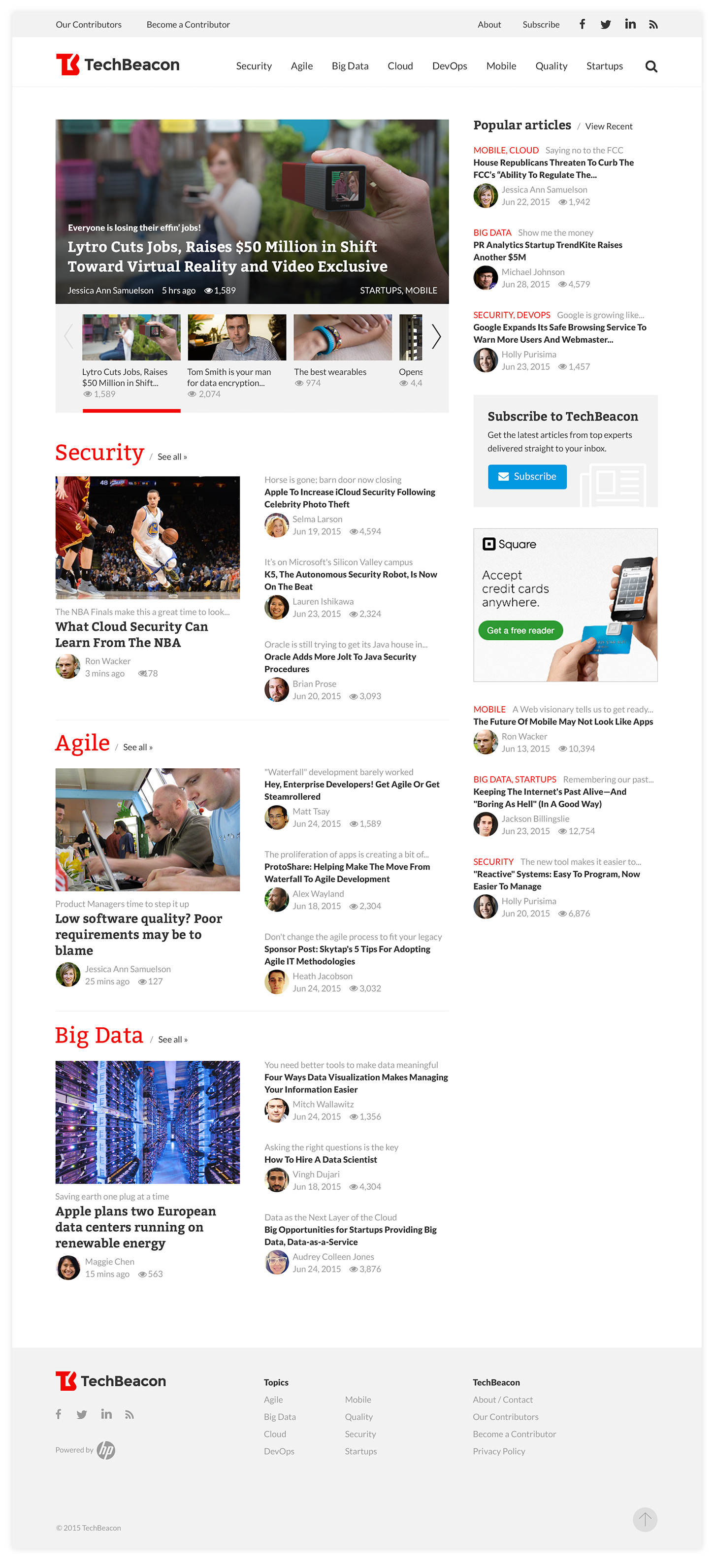 TechBeacon offers thought leadership and technical evangelism that helped position HPE Software as a leading and progressive voice amongst key decision-makers and influencers. The design and layout focuses on the content which is easily scannable with a clear hierarchy of content. The primary design goal is to let the imagery and content become the heros.